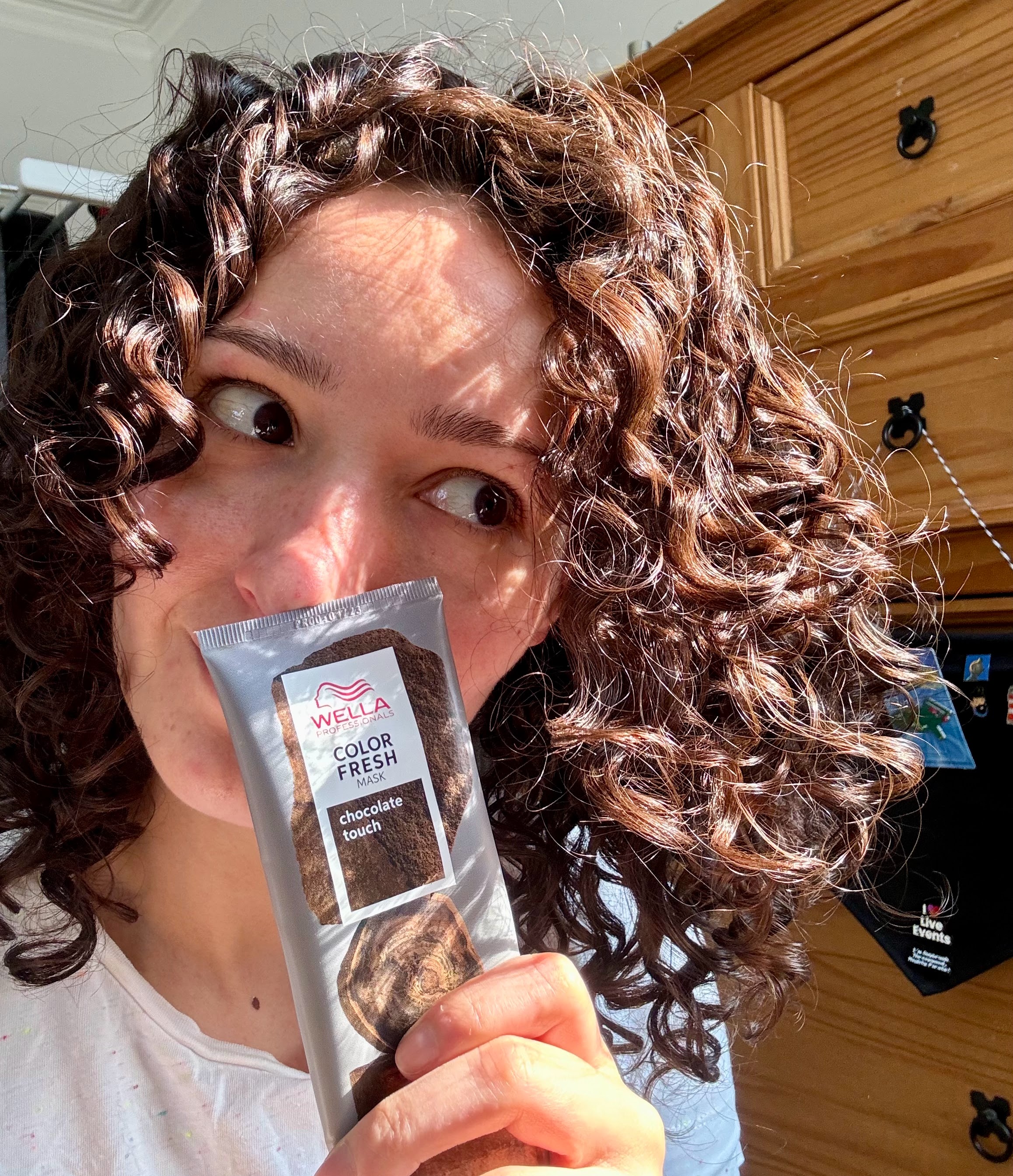 It’s a colour-depositing mask (I use the shade Chocolate Touch) that adds a little vibrancy and depth to my brown hair, and slightly blends my greys, without having to dye it. Best of all, it conditions my hair nicely without causing my hair to be overconditioned!
