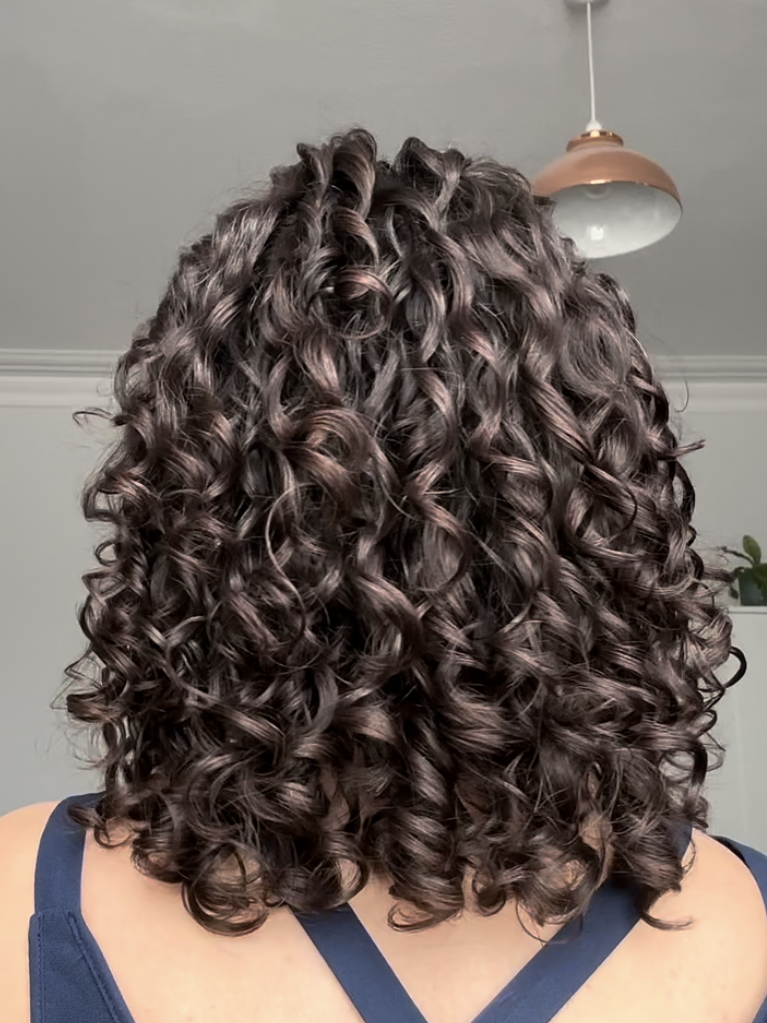 If your hair is more dry or damaged at the back, it could need a little extra conditioning, such as more curl cream. Or if it’s the front that’s more damaged (which is common if you touch your hair a lot), the back may not need as much curl cream – but still needs lots of gel!